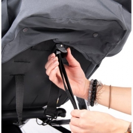 Капюшон можно опустить до бампера. Для мелочей предусмотрен дополнительный карман. В комплекте поставляется уступленная накидка на ножки, дождевик и подстаканник.