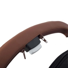 Новый дизайн обивки выполнен из модной ткани с эко-льяной структурой, коричневой кожаной отделкой на ручке и бампере коляски и нашивками, а материал на капюшоне с фильтром UV 50+. Коляска также оснащена корзиной для покупок и практической кармашком для мелких вещей в задней части капюшона.