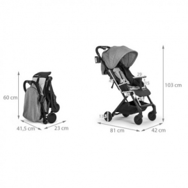 Весит коляска всего 5,8 кг (благодаря лёгкой и прочной алюминиевой раме), складывается до очень компактных размеров (60 x 24 x 42 см), в комплекте имеется регулируемый плечевой ремень для удобной переноски.
