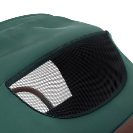 • Глубокий капюшон с дополнительной секцией закроет ребёнка от солнца или дождя. Также присутствует вентиляционное окошко и большое смотровое окно в задней части коляски.