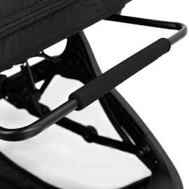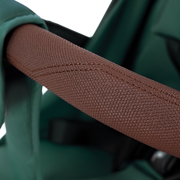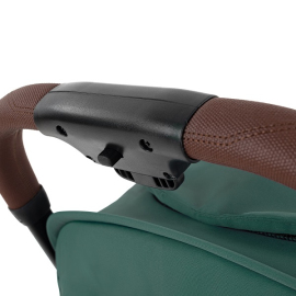 Прочная ручка из эко-кожи приятна на ощупь. Удобная конструкция помогает легко складывать коляску одним нажатием кнопки.