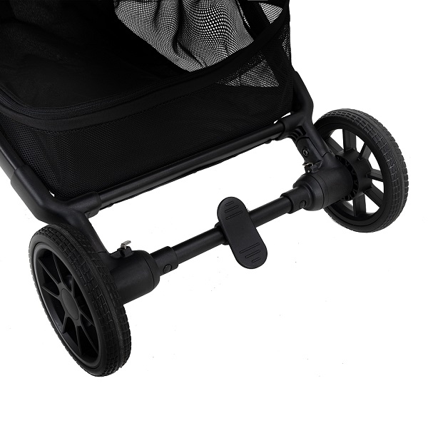 Передние колеса легко вращаются вокруг своей оси под углом 360 градусов. Они обеспечивают шасси дополнительную маневренность, значительно облегчая родителям поездку между полками магазинов.