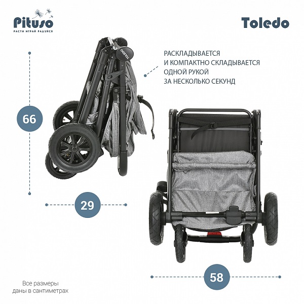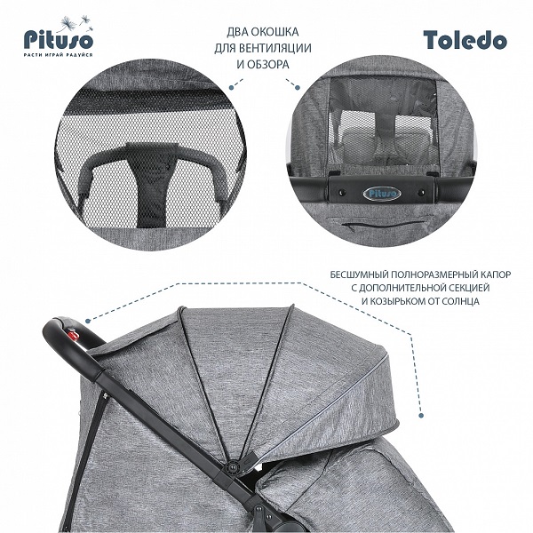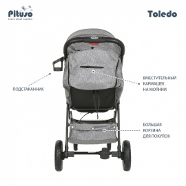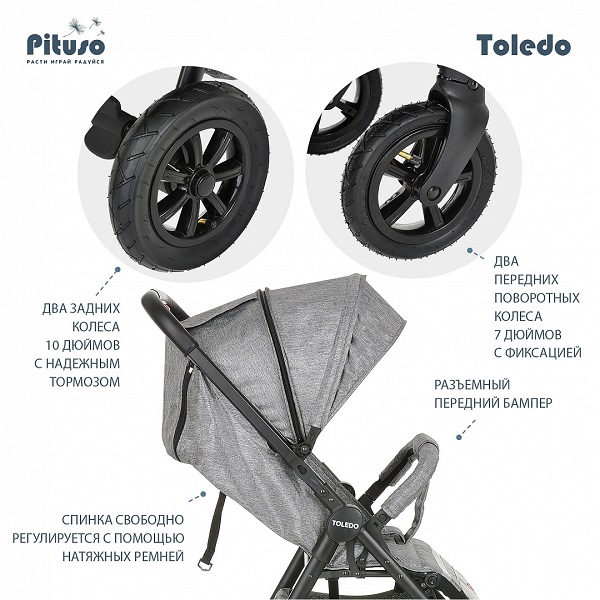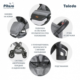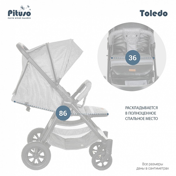 Детская коляска-книжка Pituso Toledo — новинка сезона 2021. Всесезонная коляска повышенного комфорта. В ней удачно сочетается продуманность всех деталей и современный дизайн. У коляски просторное посадочное место, а спинка может принимать наклонное положение и раскладывается в полноценное спальное место. Регулировка спинки осуществляется при помощи натяжных ремней.
