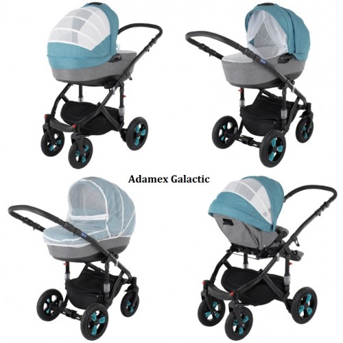 Самая популярная модель детской коляски 2014 года. Отличительная особенность adamex galactic - дополнительные амортизаторы на раме коляски для достижения максимально плавного хода и комфорта во время прогулок с малышом. Также благодаря большим надувным колесам и подшипниках на колесах ход коляски плавный и мягкий, поэтому прогулки по бездорожью не представят ни малышу ни маме дискомфорта.
