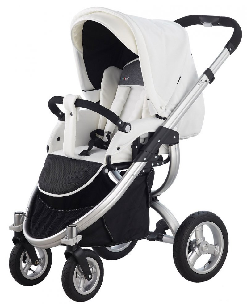 - Прогулочная коляска оснащена пятиточечными ремнями безопасности с мягкими накладками для большего комфорта.