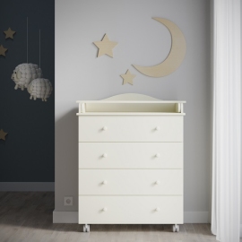 Использование комода облегчит родителям уход за ребенком во время гигиенических процедур, также поможет в экономии места и организации порядка в детской комнате. Комод устанавливается на 4 поворотных прорезиненных колеса, 2 из которых со стопорами - это дополнительное преимущество, мама при необходимости может перемещать комод по комнате с вещами, что облегчает процесс уборки или перестановки.