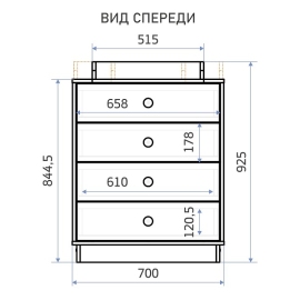 Общие габариты комода: 702*700*925 мм (глубина с пеленальным столиком, ширина, высота общая).