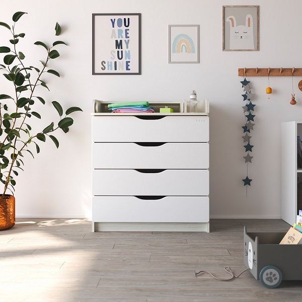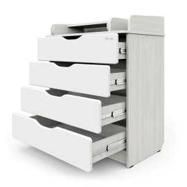 - Эргономичный пеленальный комод с отделением для средств по уходу за ребенком. Раскладной пеленальный столик размером 68х52 см. Углы пеленального столика и столешницы комода со скруглением.