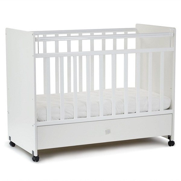- кроватка оснащена колесами со стопорами для легкого перемещения ее по комнате.
