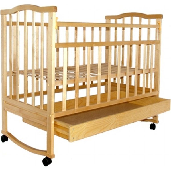 детская кроватка с механизмом качания колесо-качалка, выполненная из натурального дерева, . Несколько положений орторпедического ложа и регулируемый по высоте бортик упростят родителям перекладывание малыша в кроватку, а также обеспечат безопасность, защитив ребенка от падений. Кроватку можно приставить к родительской кровати, путем снятия боковой стенки. Кроватка Золушка 2 выполнена из массива березы, что обеспечит прочность и долговечность конструкции на несколько лет.