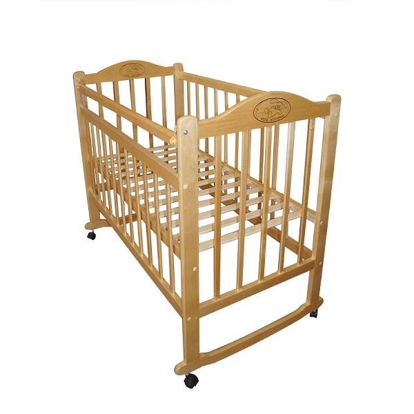 Натуральная простая детская кроватка из массива березы. Детская кроватка Мой малыш сертифицирована. Покраска кроватки выполнена лакокрасочными материалами на водной основе. Безопасны и гипоаллергенны.