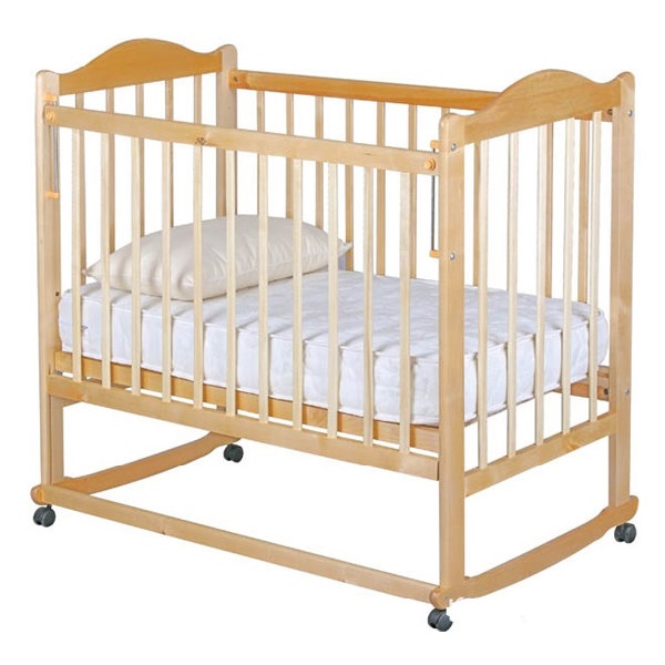 Натуральная простая детская кроватка из массива березы. Детская кроватка Мой малыш сертифицирована. Покраска кроватки выполнена лакокрасочными материалами на водной основе. Безопасны и гипоаллергенны.