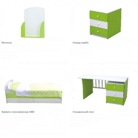 кроватка-трансформер , которая помимо того, что трансформируется в кровать для подростка, может трансформироваться в письменный стол с тумбой. Одна из немногих кроваток без маятникового механизма. Кроватка выполнена из массива березы с элементами ЛДСП.