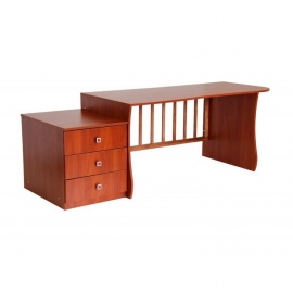 кроватка-трансформер , которая помимо того, что трансформируется в кровать для подростка, может трансформироваться в письменный стол с тумбой. Одна из немногих кроваток без маятникового механизма. Кроватка выполнена из массива березы с элементами ЛДСП.