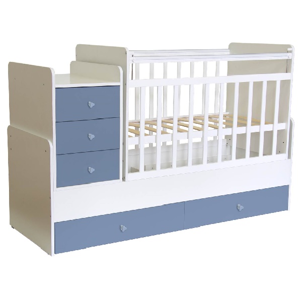 Кроватка - трансформер Фея 1100 - классический вариант детской кровати-трансформера. Кроватка выполнена из массива березы. В изготовлении комода и нижней выдвижной шуфляды применяется высококачественное ДСП.