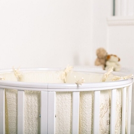 - Форма кроватки способствует более быстрому развитию ребёнка, так как в ней открывается обзор на 360 градусов.