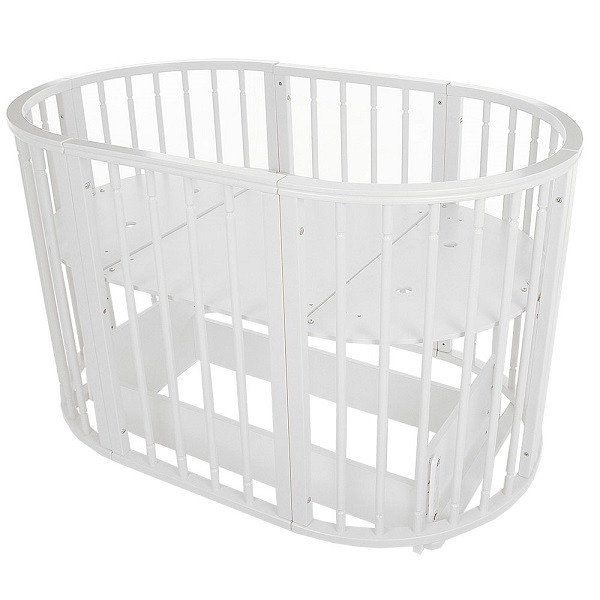 - Корпус легко трансформируется в уютную овальную кроватку размером 125 х 75 см.