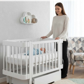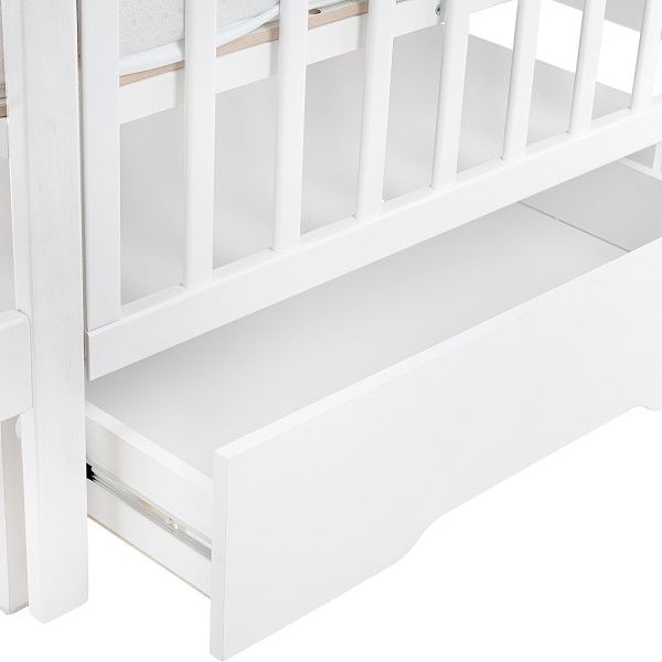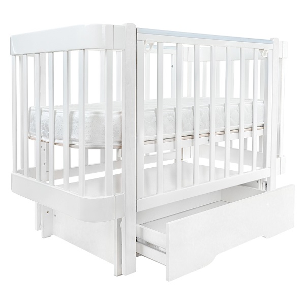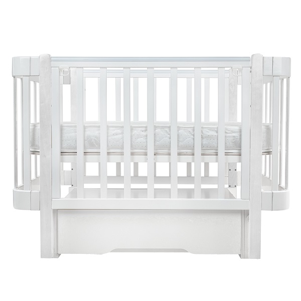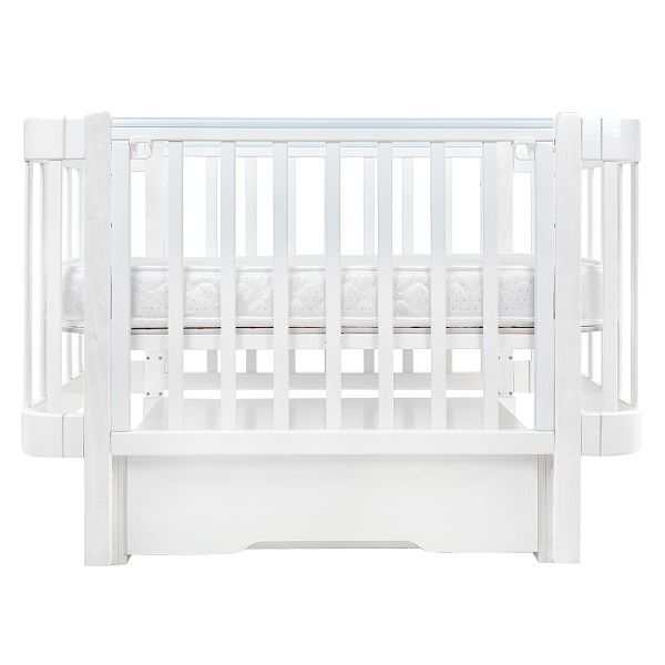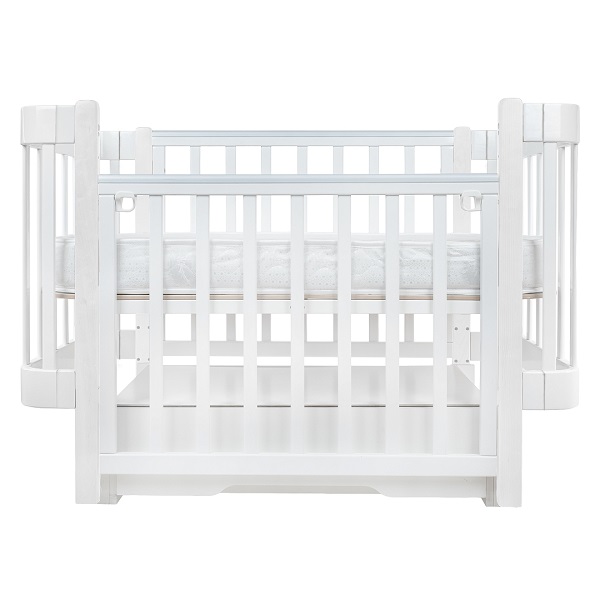- Маятник. Кроватку можно установить на продольный маятник. Специальная функция укачивания успокоит малыша перед сном и создаст бесшумные плавные движения, похожие на ручное качание.