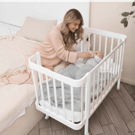 - Благодаря съемной авто-стенке, можно приставлять к родительской кровати.