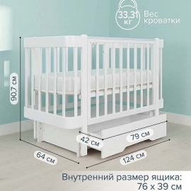 - Удобный выдвижной ящик для детских принадлежностей: длина внешний размер - 79 см, внутренний - 76 см; ширина внешний размер - 42 см, внутренний - 39 см.