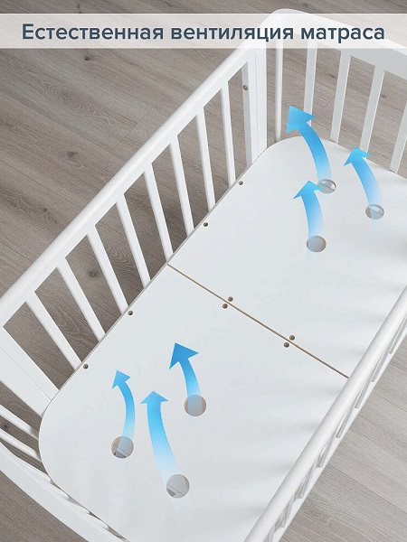 - Дно кроватки с отверстиями, которые обеспечивают естественную вентиляцию матраса.