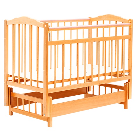 детская кроватка от белорусского производителя с механизмом качания поперечный маятник на подшипниках (качание в короткую стенку). Выполнена из 100% натурального дерева - массив ольхи. Гарантия качества кроватки подтверждена сертификатами соответсвия и безопасности
