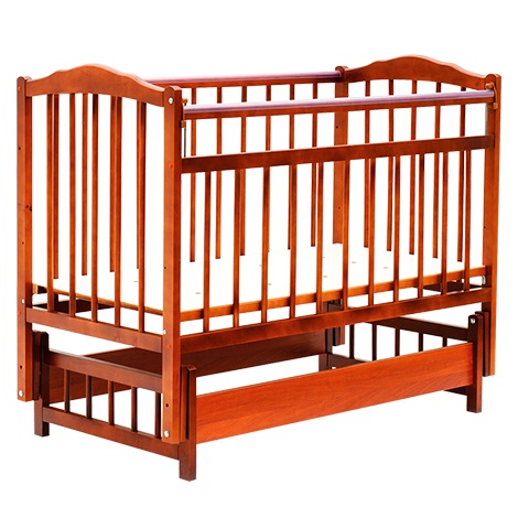 детская кроватка от белорусского производителя с механизмом качания поперечный маятник на подшипниках (качание в короткую стенку). Выполнена из 100% натурального дерева - массив ольхи. Гарантия качества кроватки подтверждена сертификатами соответсвия и безопасности