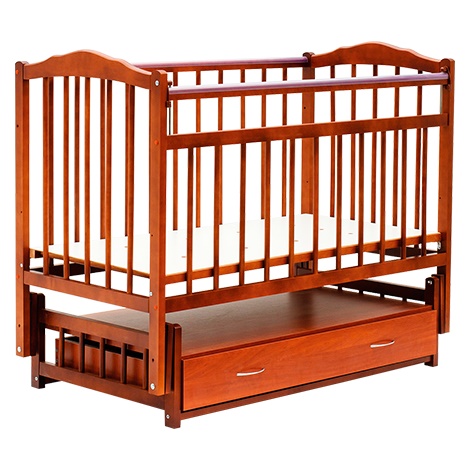 детская кроватка от белорусского производителя с механизмом качания поперечный маятник на подшипниках (качание в короткую стенку) и закрытым вместительным ящиком. Выполнена из 100% натурального дерева - массив ольхи. Гарантия качества кроватки подтверждена сертификатами соответсвия и безопасности