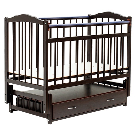 Детская кроватка Бамбини маятник с ящиком цвет темный орех