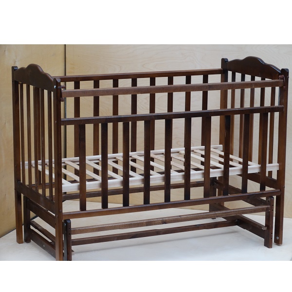 недорогая детская кроватка, выполненная из натурального дерева (массив березы), с механизмом качания - поперечный маятник, порадует покупателей как качеством исполнения так и ценой.