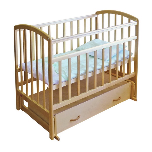 детская кроватка в Минске, выполненная из массива березы с соблюдением всех норм и стандартов. Оснащена маятником поперечного качания и ящиком для хранения вещей.