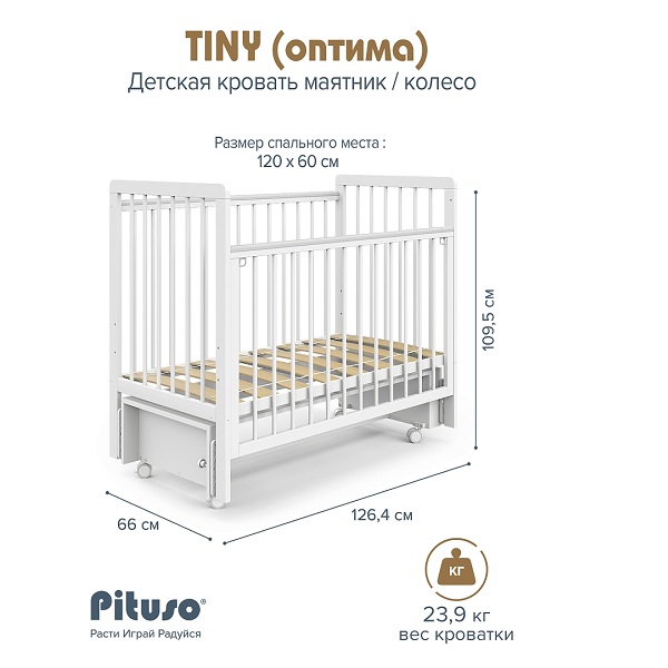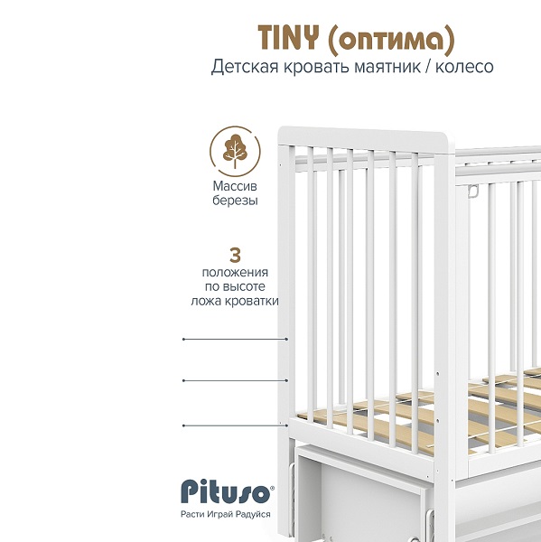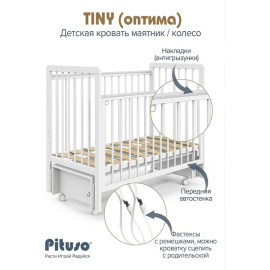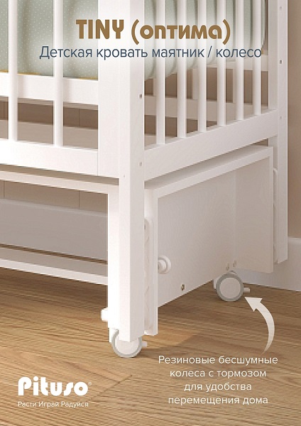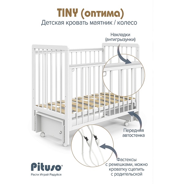 Детская кроватка Pituso Tiny АВТОСТЕНКА маятник/колесо