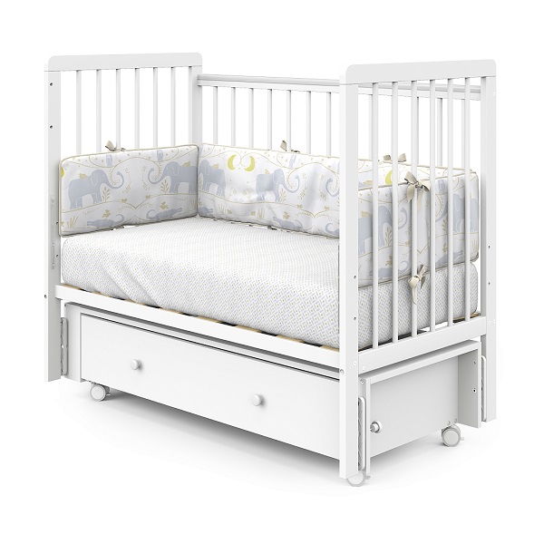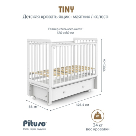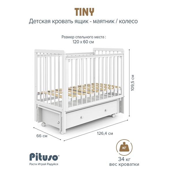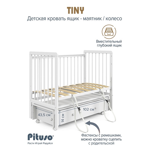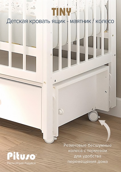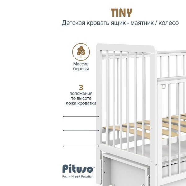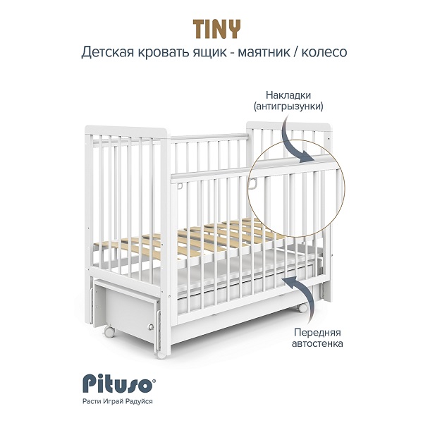 Детская кроватка Pituso Tiny АВТОСТЕНКА ящик маятник/колесо