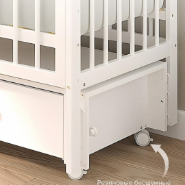 - Вместительный и глубокий ящик под кроваткой. Высота 14см, Ширина 102 см, Глубина 43,5 см.