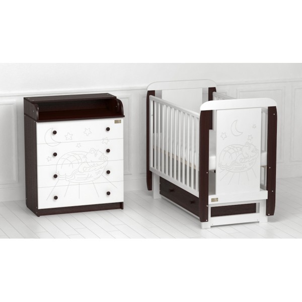 Детская кроватка Kitelli Micio поперечный маятник цвет венге-белый