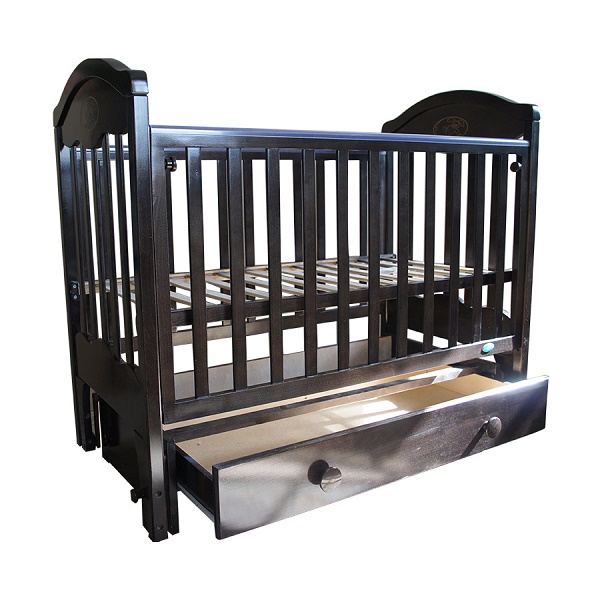 - Дно кроватки выполнено из ортопедических ламелей, имеет регулировку по высоте в 2-х положениях.