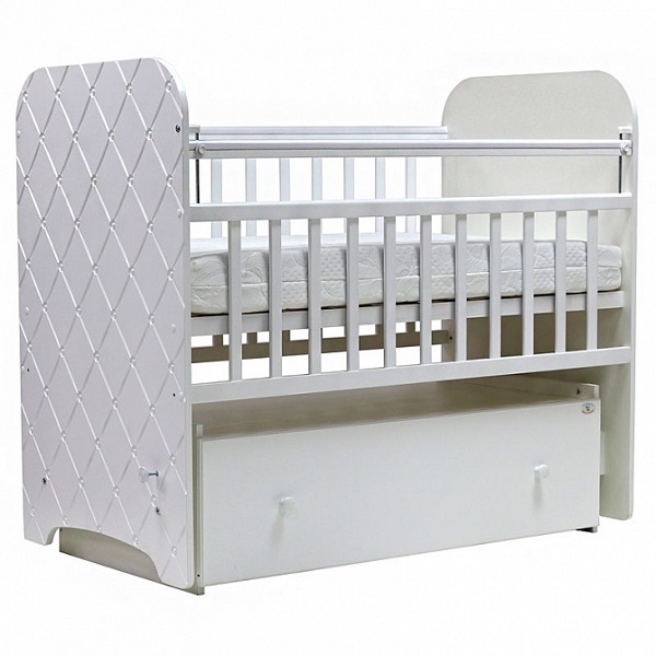 - отличительная особенность модели - гравировка ромбами боковых стенок кроватки