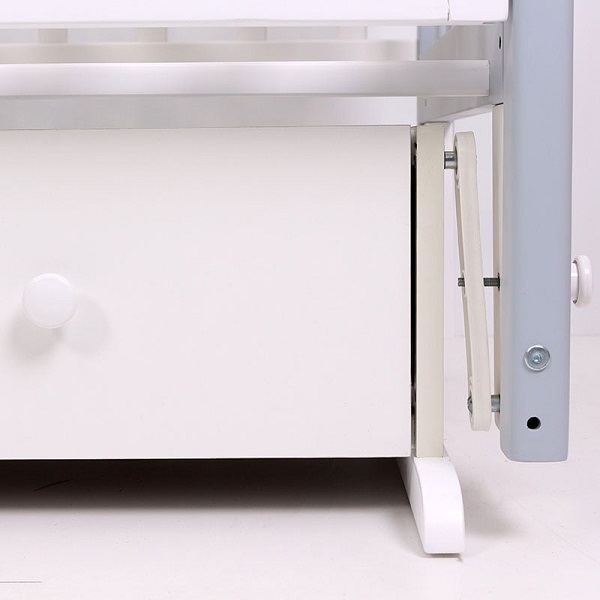 Функциональный объемный выдвижной ящик в нижней части кроватки позволит удобно разместить и хранить детские вещи, постельные принадлежности, памперсы, игрушки и другие предметы обихода, не занимая дополнительного места.