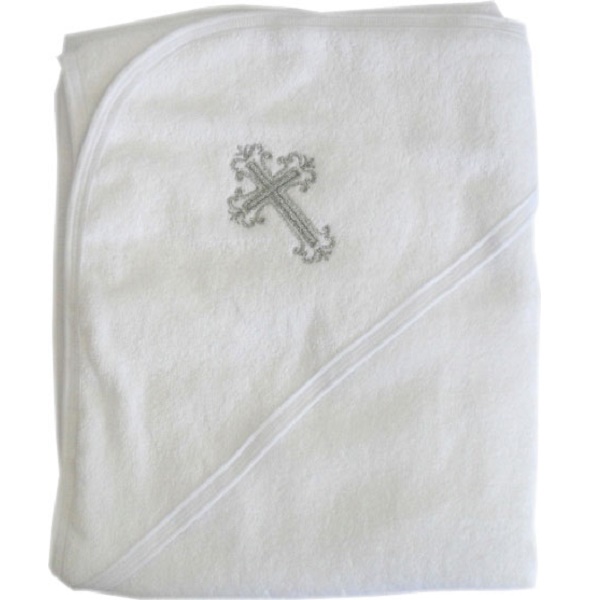 Полотенце для крещения с вышивкой неотъёмный атрибут крещения. Махровое полотенце выполнено на хлопковой основе, что обеспечивает комфортность для ребенка в процессе всего крещения. Полотенце украшено символически вышитым крестом и имеет удобный уголок для одевания на голову малышу после крестильного окунания.