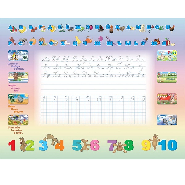 - варианты тематического исполнения столешницы: буквы-цифры, зима-лето, части света