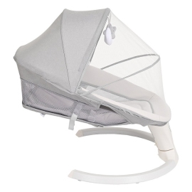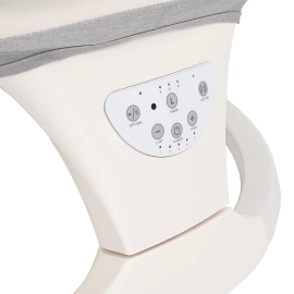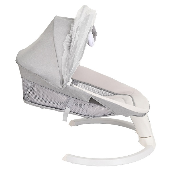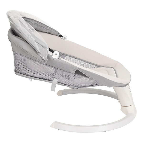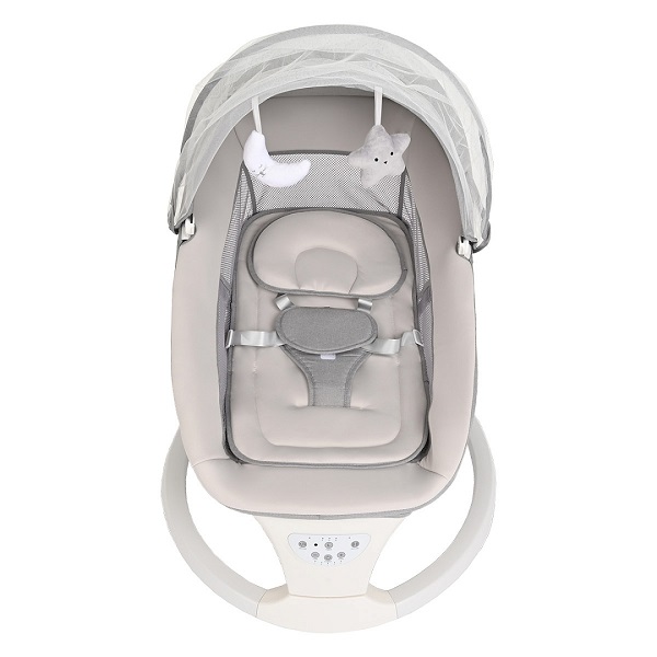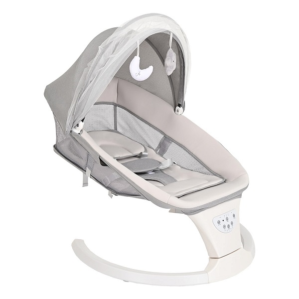 Электрокачели оснащены удобной ремневой регулировкой спинки, что позволяет выбрать наиболее удобное положения ребенка полусидя или полулежа в зависимости от возраста малыша, а также ложе легко раскладывается в горизонтальное положение.