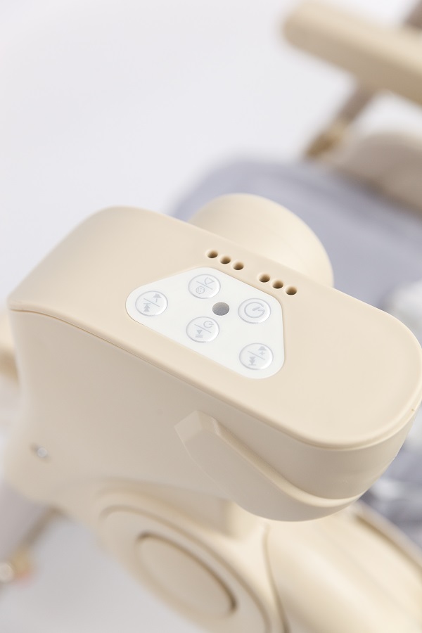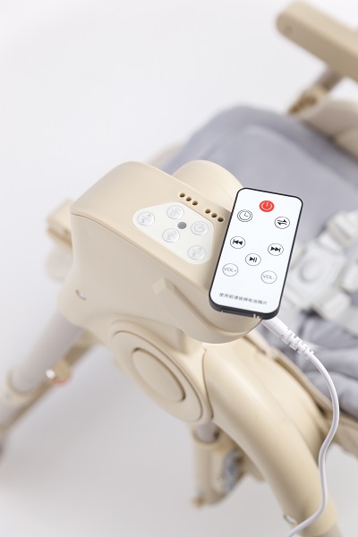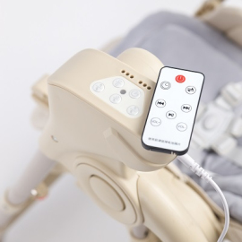 - Электрокачели работают от сети (длина шнура 1,5м) или портативного зарядного устройства. Управление или на самом стульчике или при помощи пульта, который идет в комплекте.