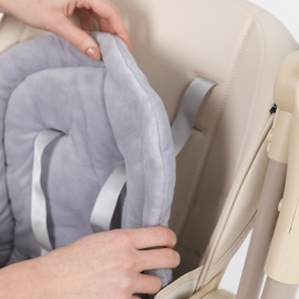 - Высота сиденья регулируется в 5 уровнях, что позволяет адаптировать стульчик для удобства родителей. Столик со съемным подносом регулируется по глубине в 3 положениях, а углубление для кружки делает процесс кормления еще удобнее.
