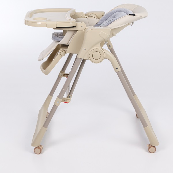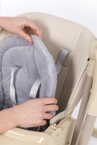 - Наклон спинки регулируется в 4-х положениях, включая положение шезлонг с углом наклона до 165 градусов, для самых маленьких. За безопасность ребёнка отвечают пятиточечные ремни и ограничитель для ножек в столике.